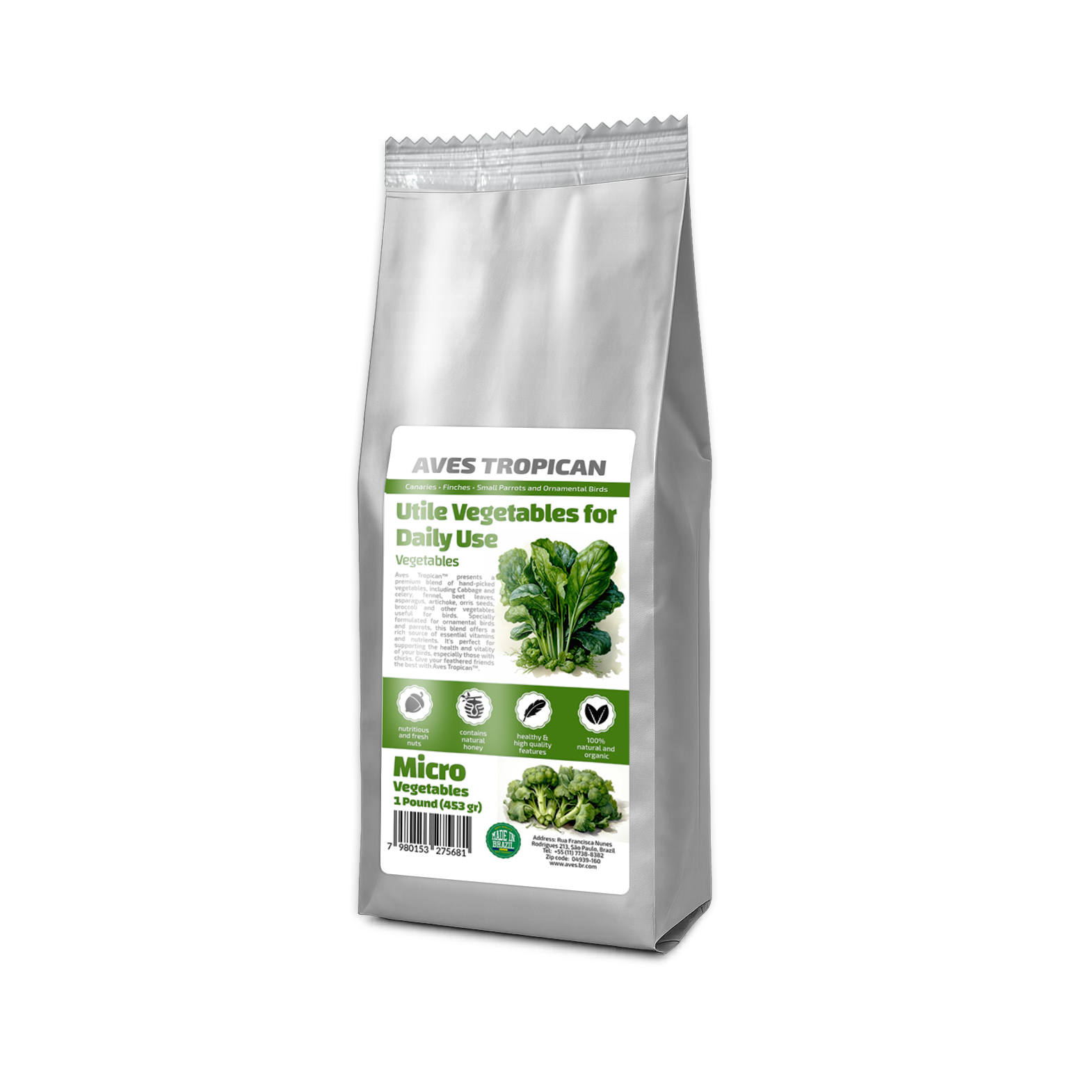 تولید 🇧🇷 خوراک ویتامینه سبزیجات و صیفی جات دارای ویتامینهای A,B¹ B² B⁶,C,D³,E غنی شده با عسل و سرشار از فیبر و سایر مواد معدنی مورد نیاز پرندگان زینتی بخصوص پرندگان مولد و جوجه ها. دارای دان نیجر و رازیانه. بسیار خوشبو و خوش خوراک بدون نگهدارنده و کاملاً ارگانیک.