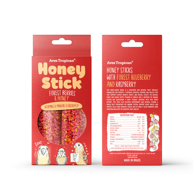 بافت ترد و خوشخوراک این استیک باعث میشود پرنده با انگیزه و اشتیاق بیشتری آن را نوک بزند. طعم شیرین عسل همراه با عطر و طعم طبیعی توتهای جنگلی، این محصول را به یک تشویقی جذاب، سرگرمکننده و بسیار محبوب برای انواع طوطیسانان کوچک و متوسط تبدیل کرده است.